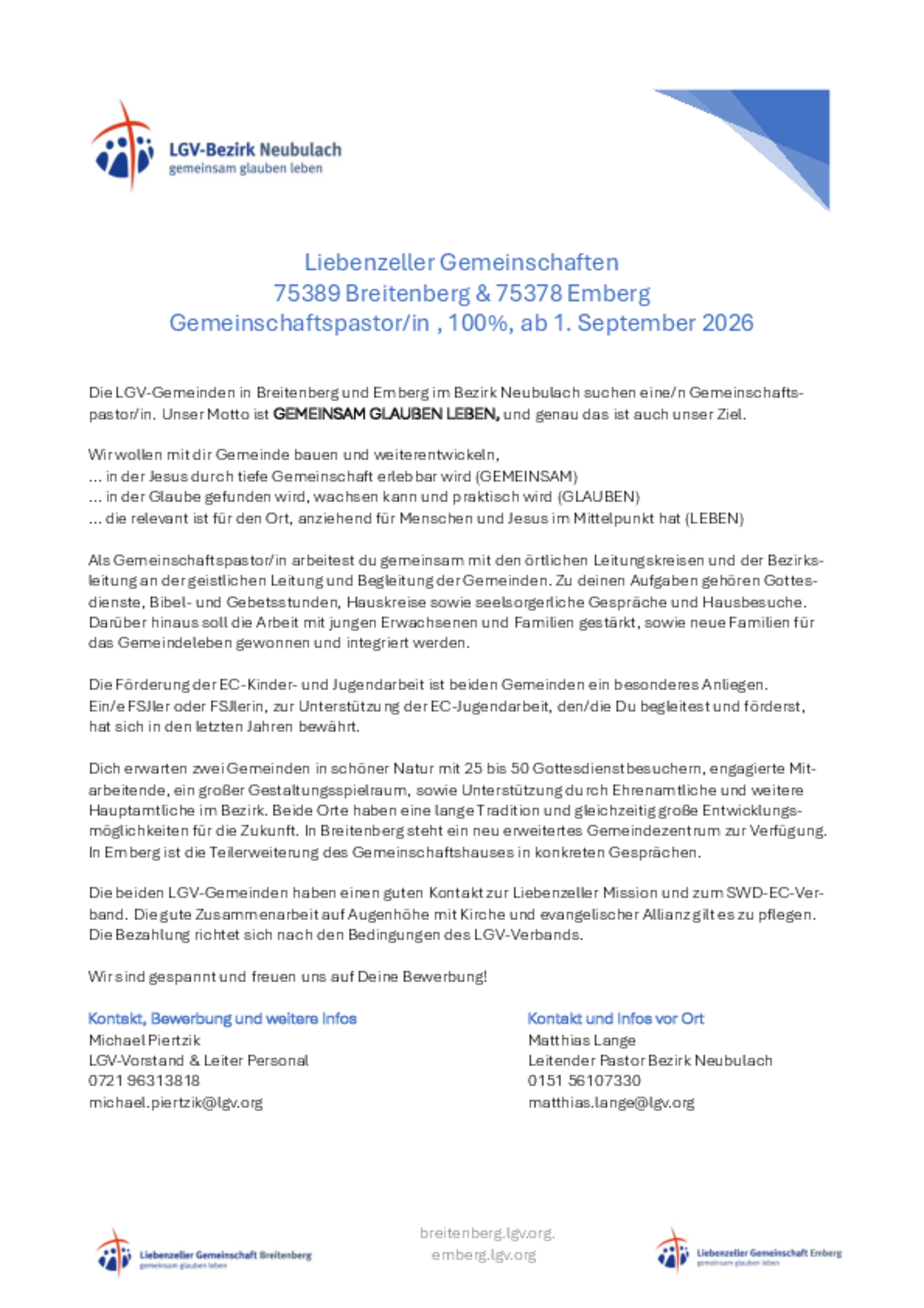 Weitere Informationen können Sie der Datenschutzerklärung des Liebenzeller Gemeinschaftsverband e.V. entnehmen.