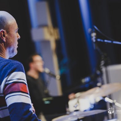 Arne Kopfermann mit Band setzte zwei Markierungen durch ein geteiltes Konzert, dass von Buchlesungen durchzogen war. Dabei schilderte er den tödlichen Unfall seiner 12jährigen Tochter Sara, den er zu verantworten hatte, als er wegen blendender Sonne das Auto nicht gesehen hatte, das in sie reinfuhr. Er zeigte authentisch den langen Weg der Trauer und Klage auf, deutete an, welche dramatische Spannung dabei eine Ehebeziehung zu durchleiden hat. Er plädierte dafür, dass in christlichen Gemeinde nicht nur das Gotteslob, sondern auch die Klage Platz haben müsse. Das 90minütige Konzert endete mit einem Lied über die Ewigkeitsperspektive, die Christen haben.
